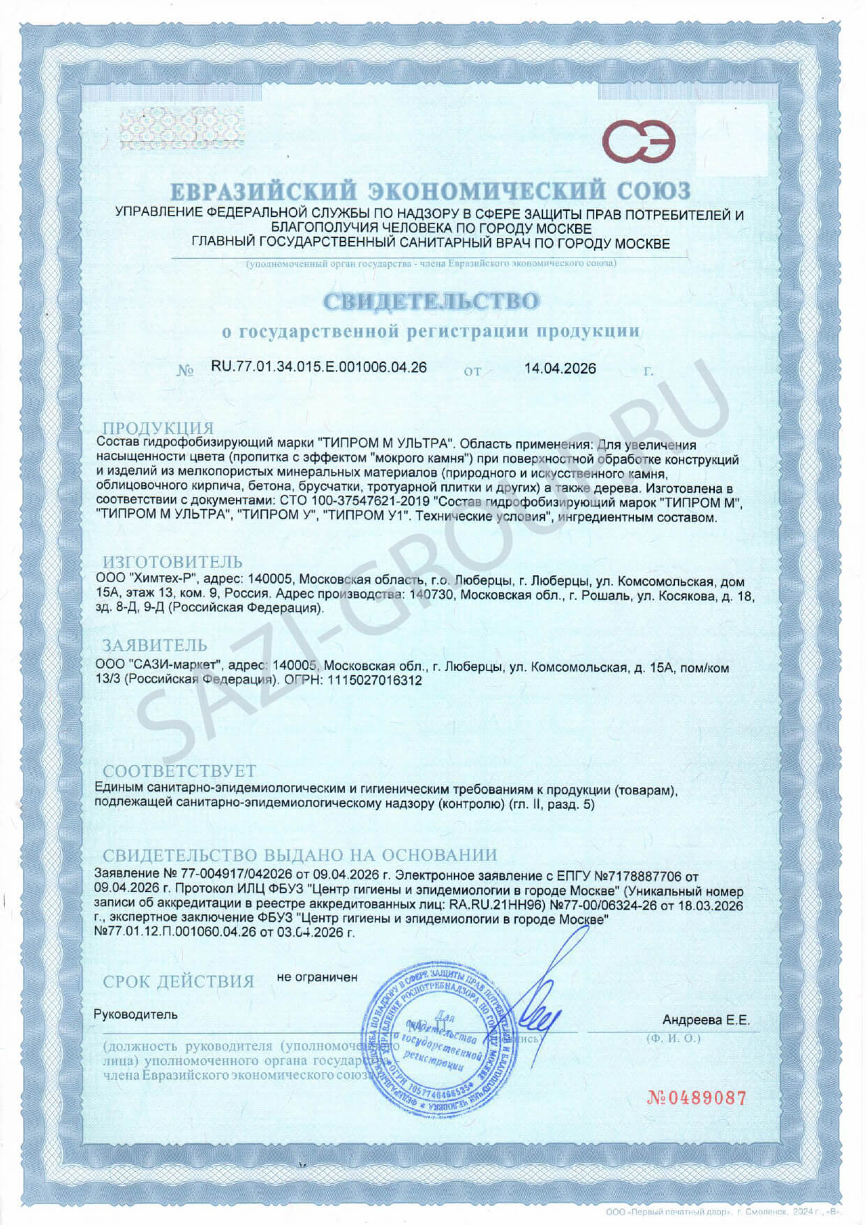 • Свидетельство о госрегистрации Свидетельство о госрегистрации Сазиласт 24 Классик Свидетельство о госрегистрации Сазиласт 24 Классик